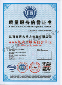 零配件服務1、備件服務1.1 備用備件對高質量服務也是很重要的。“江西省博大動力設備有限公司”對故障